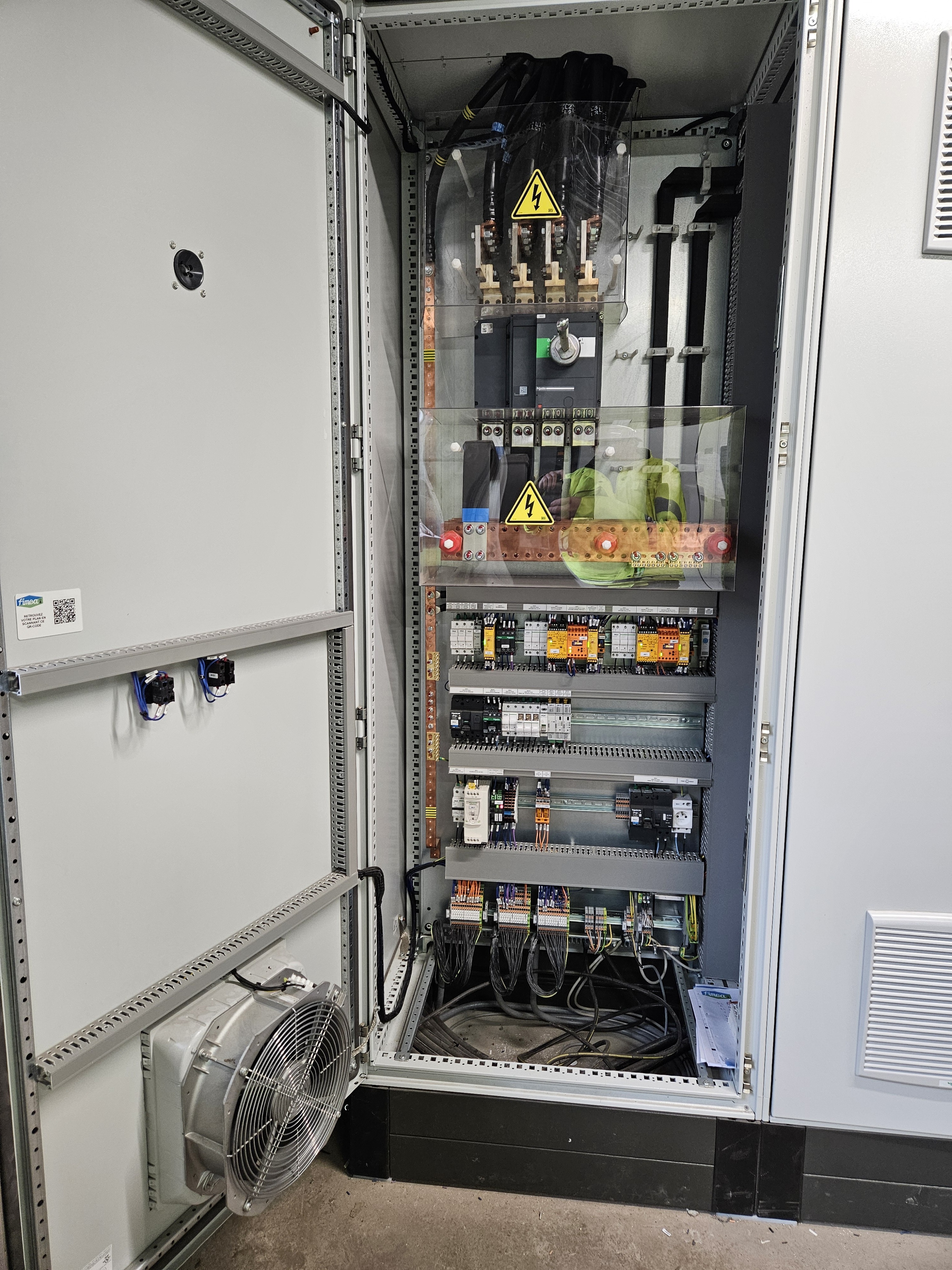 Installation d’une armoire de puissance pour l’alimentation de deux presses à granuler par démarreurs directs de 200 kW.