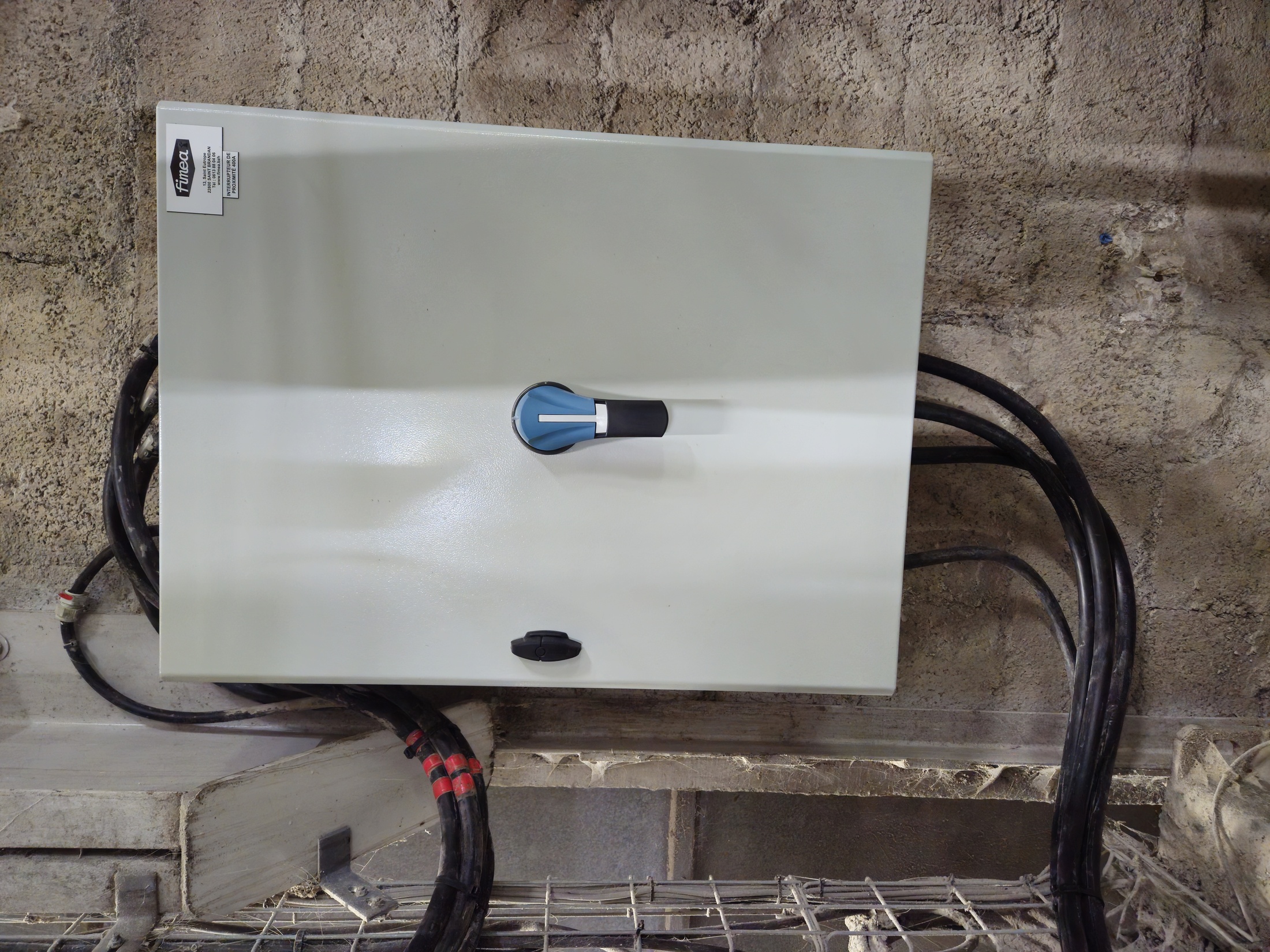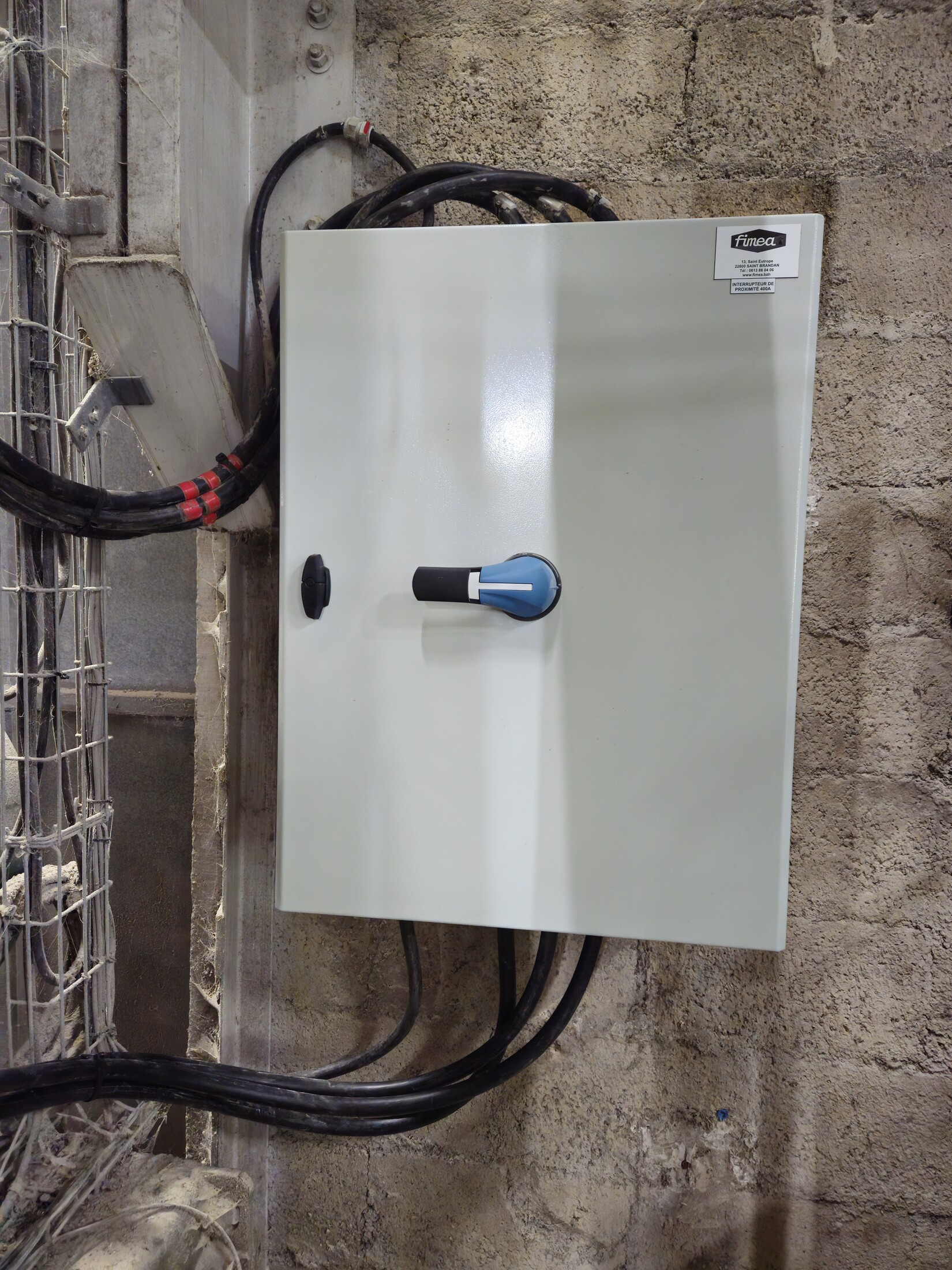 Un coffret a été équipé et raccordé sur une ligne de puissance pour intégrer un interrupteur de sécurité 400 A. Cette opération permet une isolation mécanique rapide de l’alimentation moteur.
